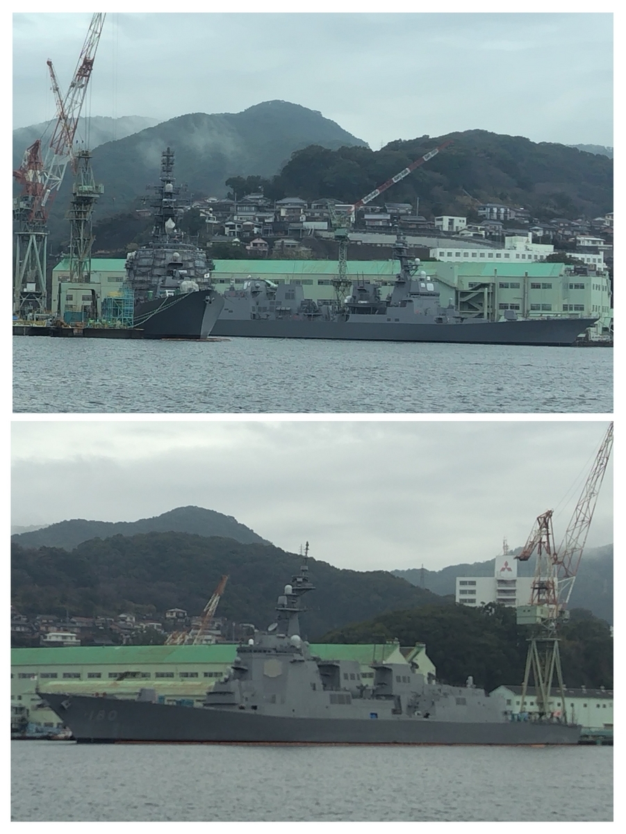 長崎港内に入っていくと三菱の造船所には最新のフリゲート艦や護衛艦がずらり。