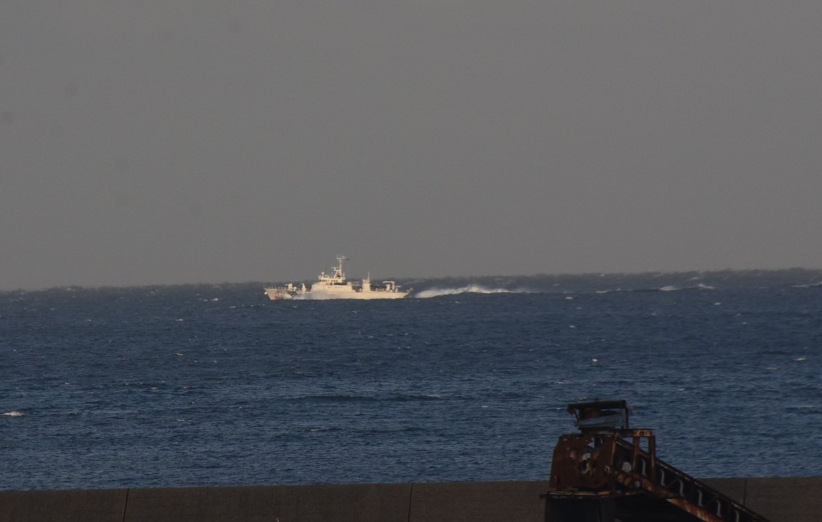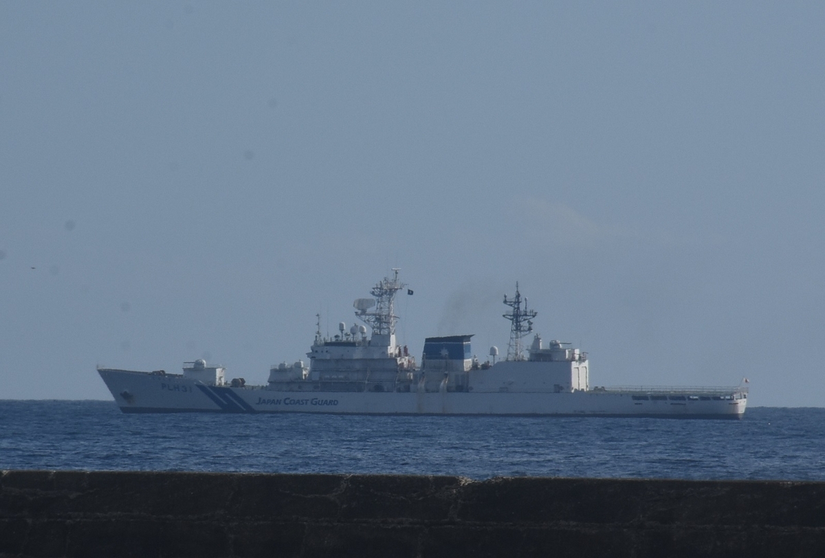 小瀬田沖には海上保安庁の巡視船「しきしま」が引き続き停泊して警戒中。