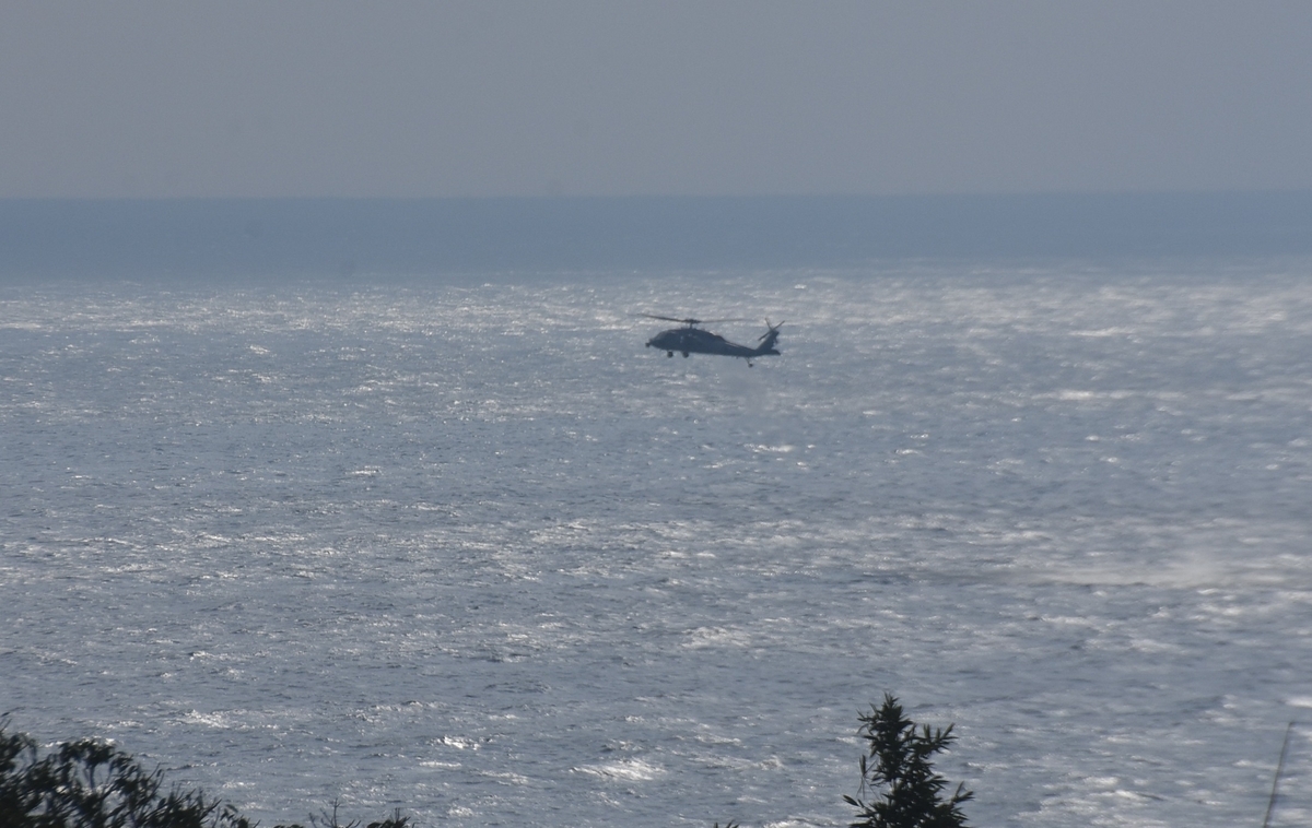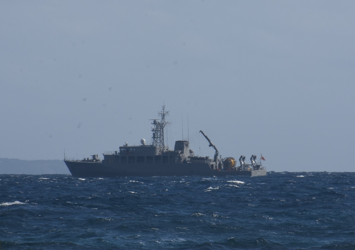 12月8日、通称クリスタル岬から種子島を望めば墜落地点付近に自衛隊の掃海艦が。